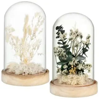 Material: 60% Glass, 10% Wooden Base, 30% Dried Flowers