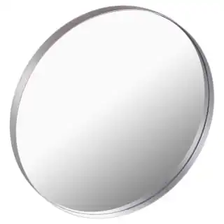 A stylish silver round small mirror with a slim metal frame to add a contemporary, modern twist to any space in your home.